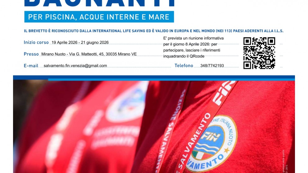 Evento CORSO ASSISTENTE BAGNANTI 12 Gennaio 2026 ‹ › × Gli Angeli dell'Acqua Il corso sarà organizzato nel nostro impianto. Riunione informativa 8 APRILE 2026 Per info: Segreteria Piscina / QR CODE